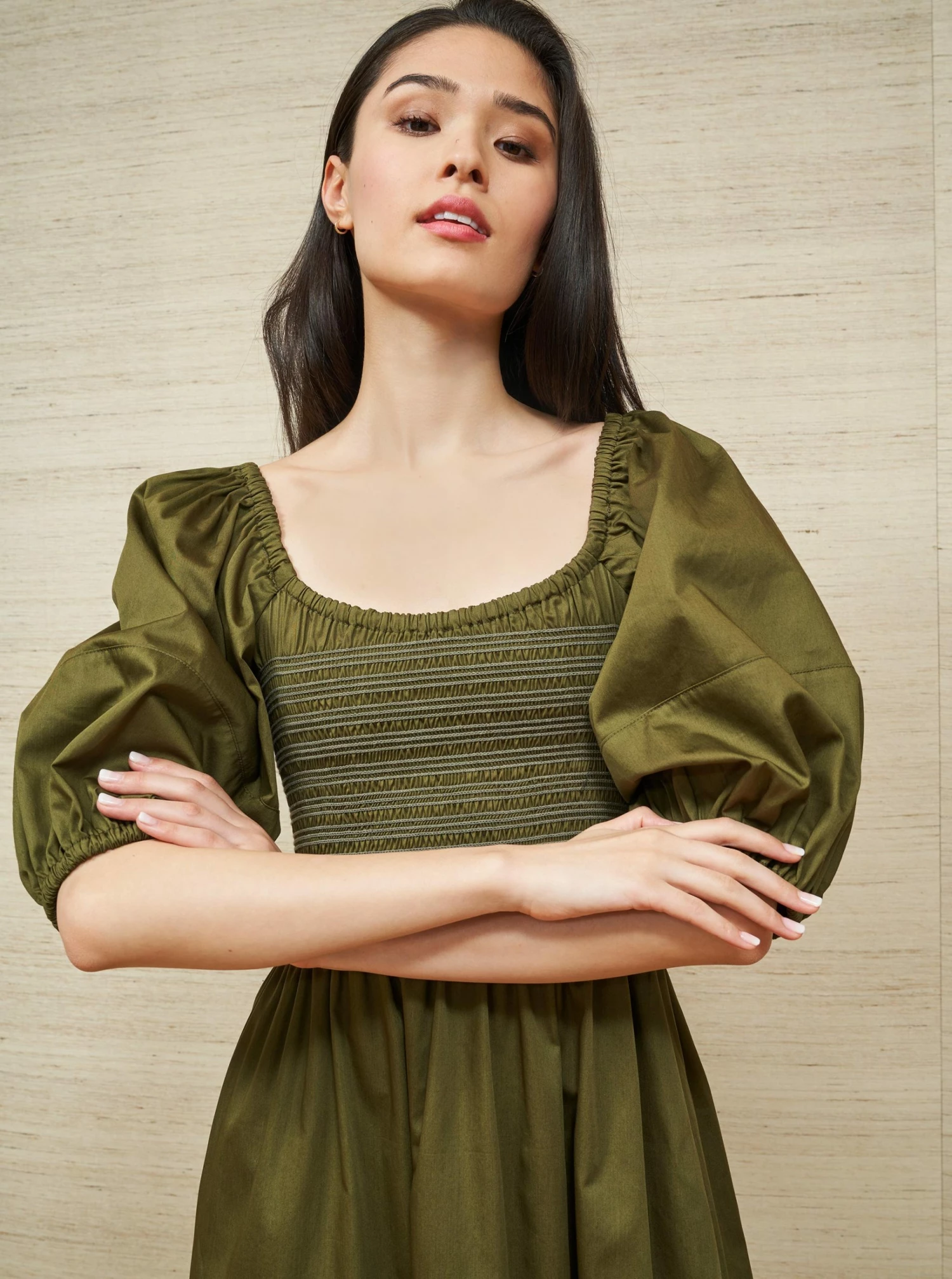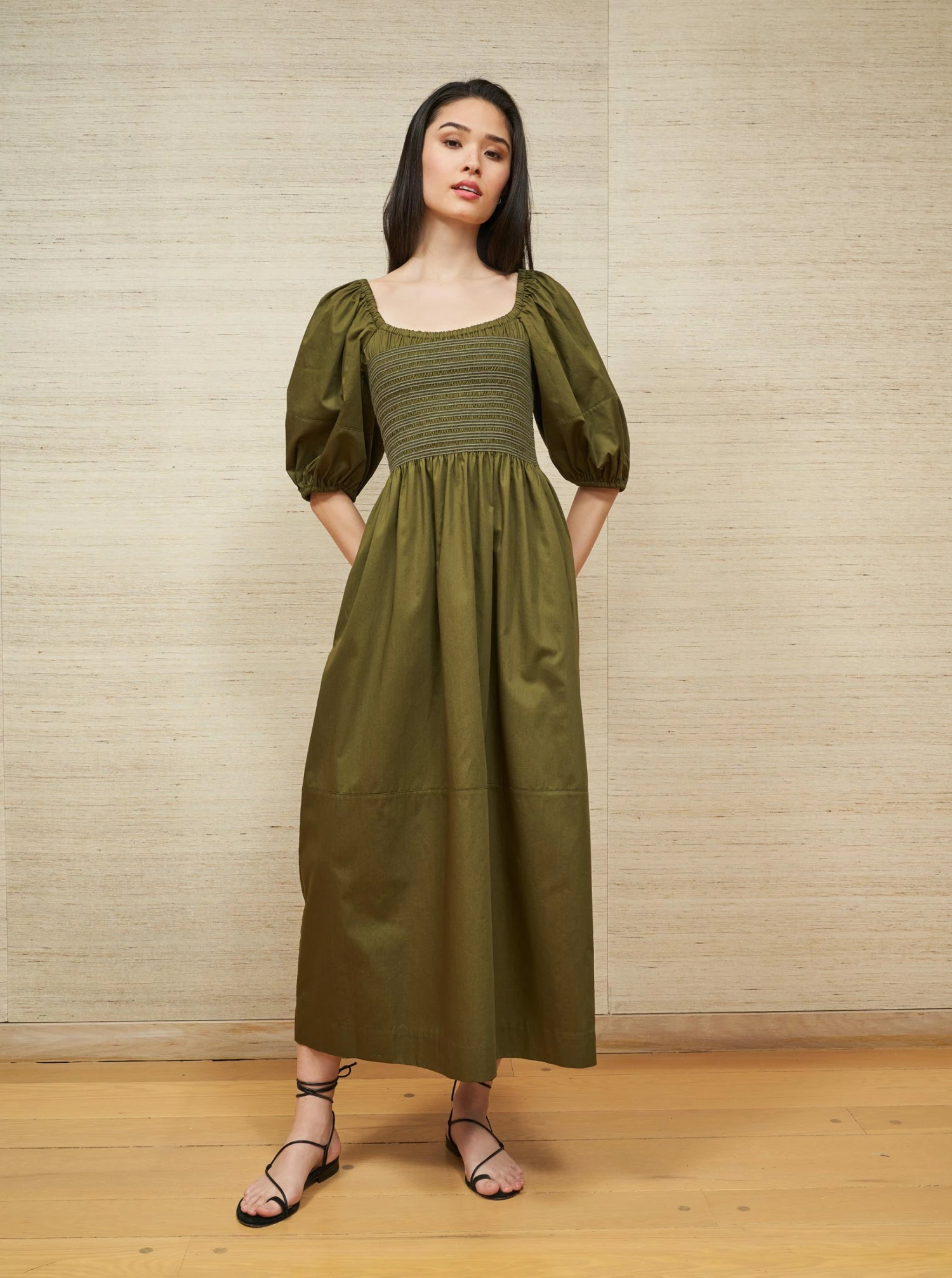 Look fresh as a daisy in our easy, cotton poplin dress with smocked bodice, puff sleeves and of course those side seam pockets that you know and love us for.
