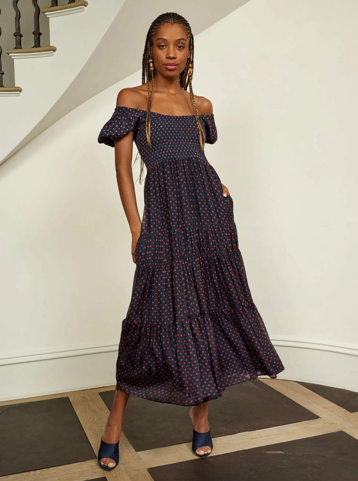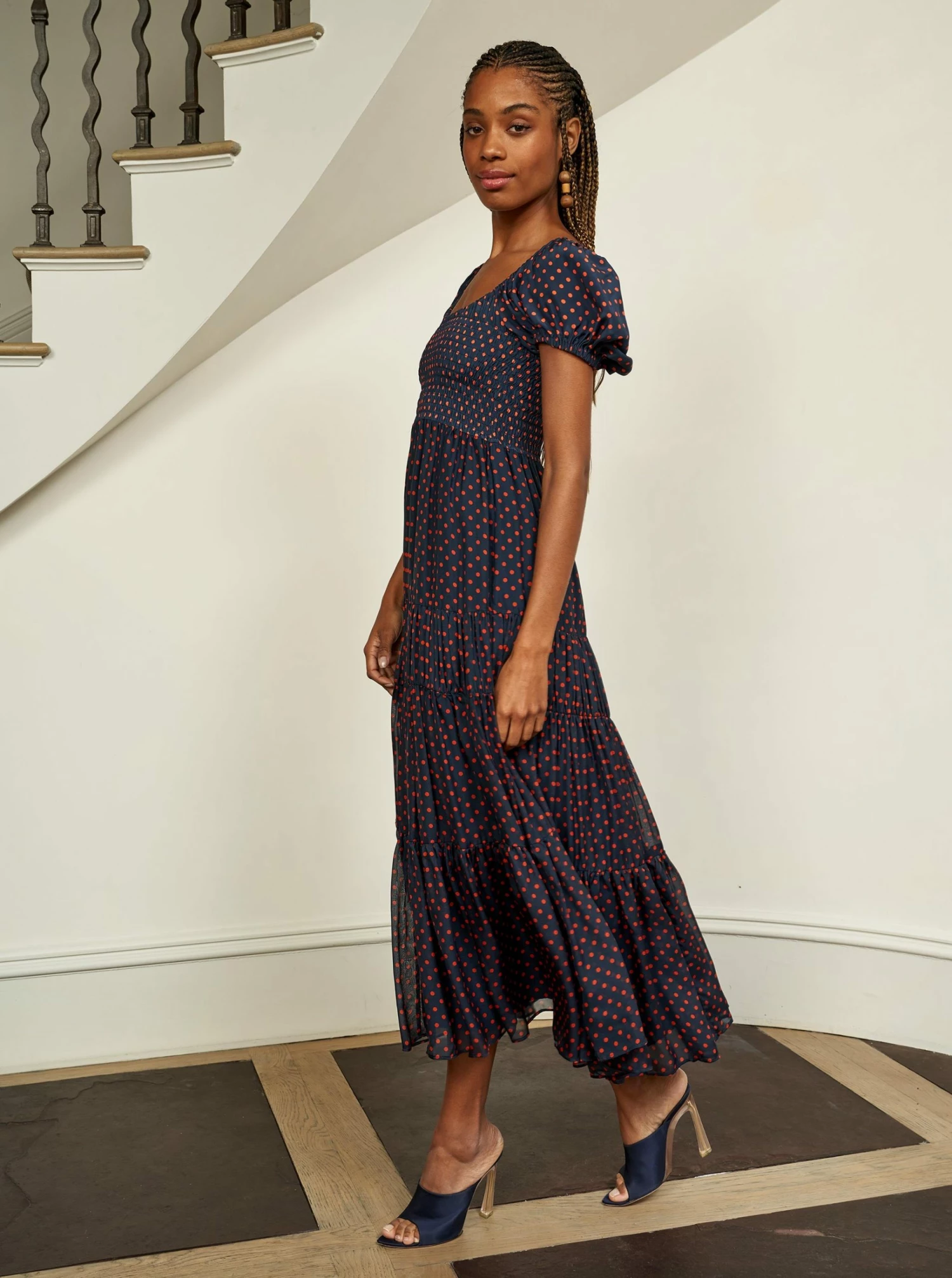 LLC13304_NAVY/ORANGE DOT Valentina Dress Dresses