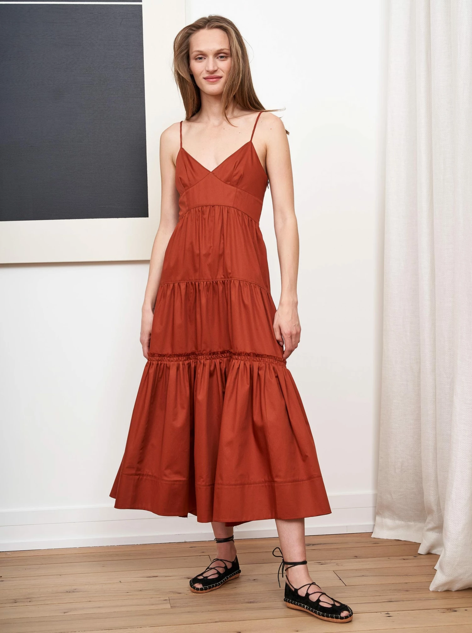 A sister to our best-selling Bee dress, the Beatrix has the same sweetheart neckline but features a tiered skirt for maximum romance.
