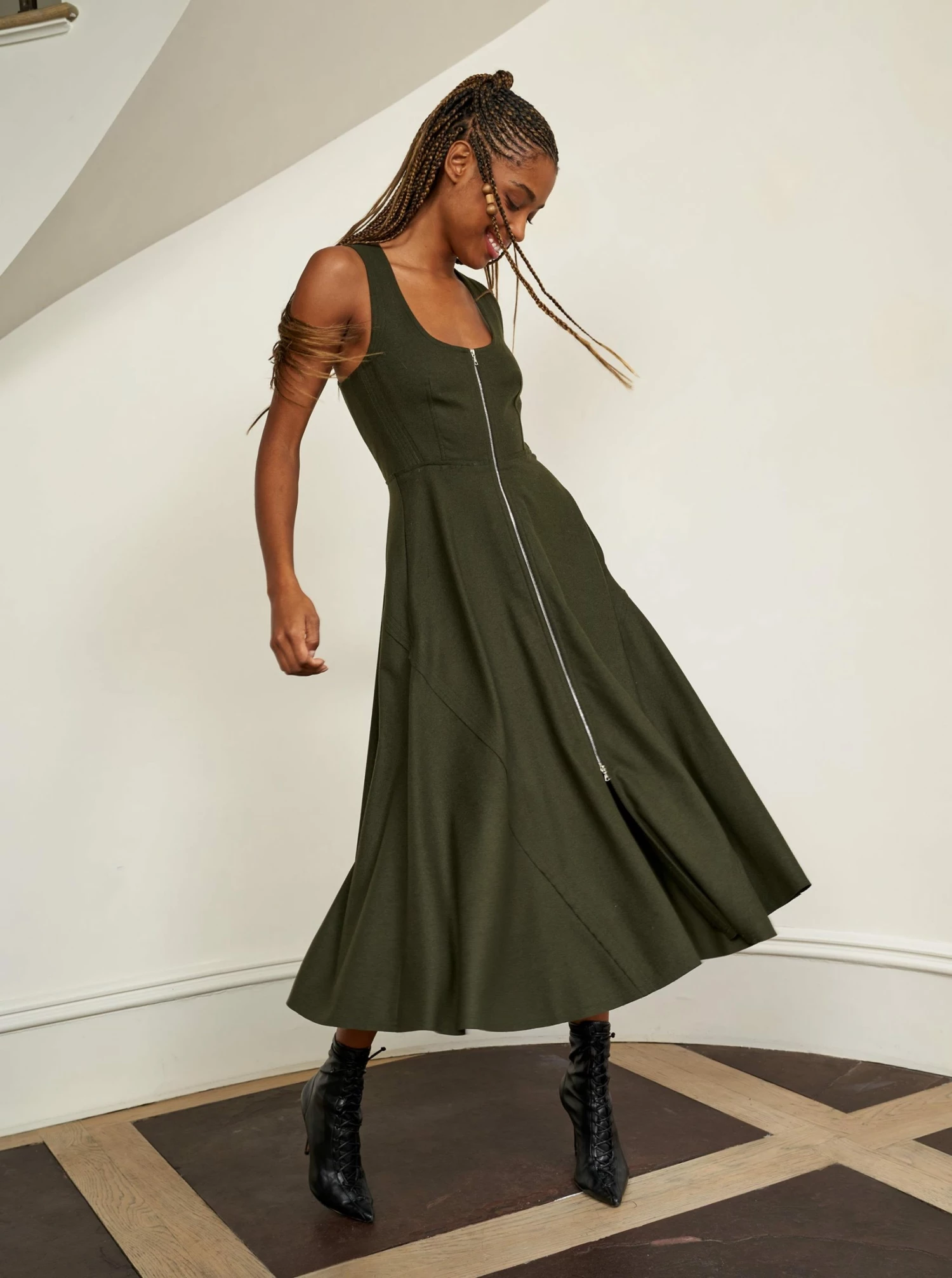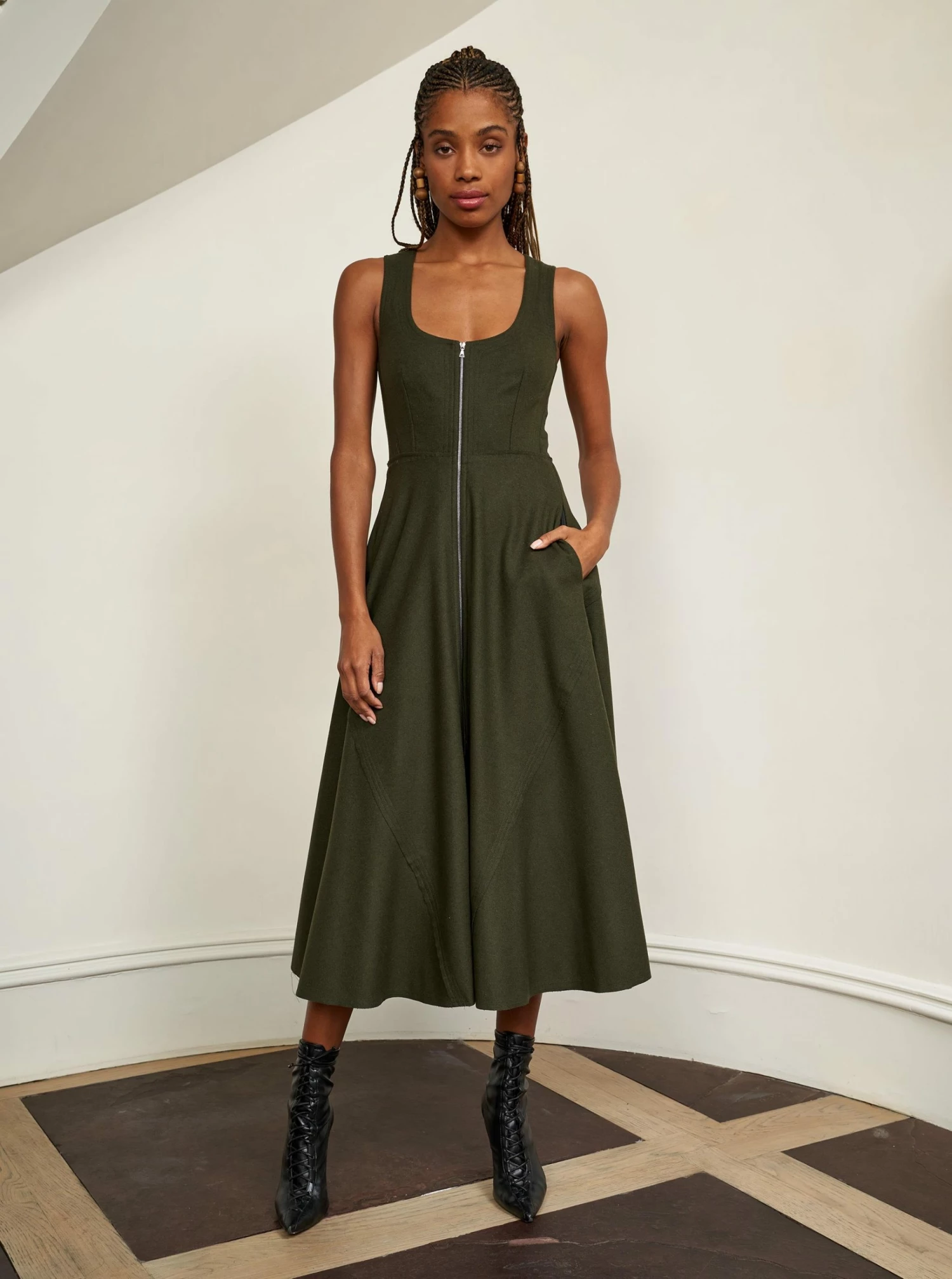 Inspired by La Bande member Selby Drummond, this black, sleeveless dress with smocked back for ease and a two way zipper to show as little or as much décolleté (or leg) is where comfort meets chic. Elevated with a hint of sport, feel free to run away with this dress in a flat boot or simply strut into a room when you wear it with heels. Just like Selby, there is nothing this dress can’t do.