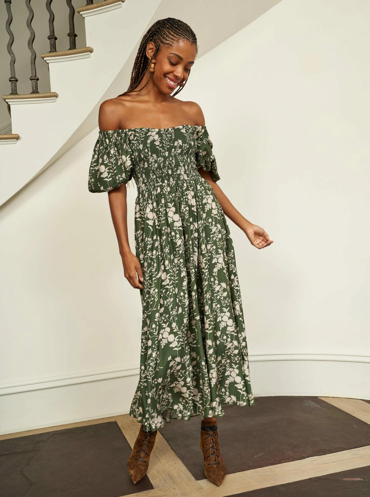 Our new silk Lola Dress in silk charmeuse is the perfect transition into warmer weather with short elasticated sleeves that can be worn either up or off the shoulder. Pair with your favorite sandals and fall in love.
