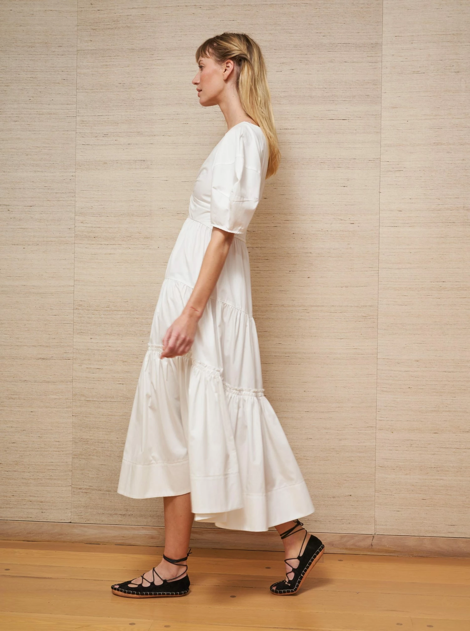Our lightweight and easy Sirena Dress does all the dressing up for you with feminine details like the v-neckline with twisted knot, round sleeves and flared skirt. Zip it up and zip out the door.