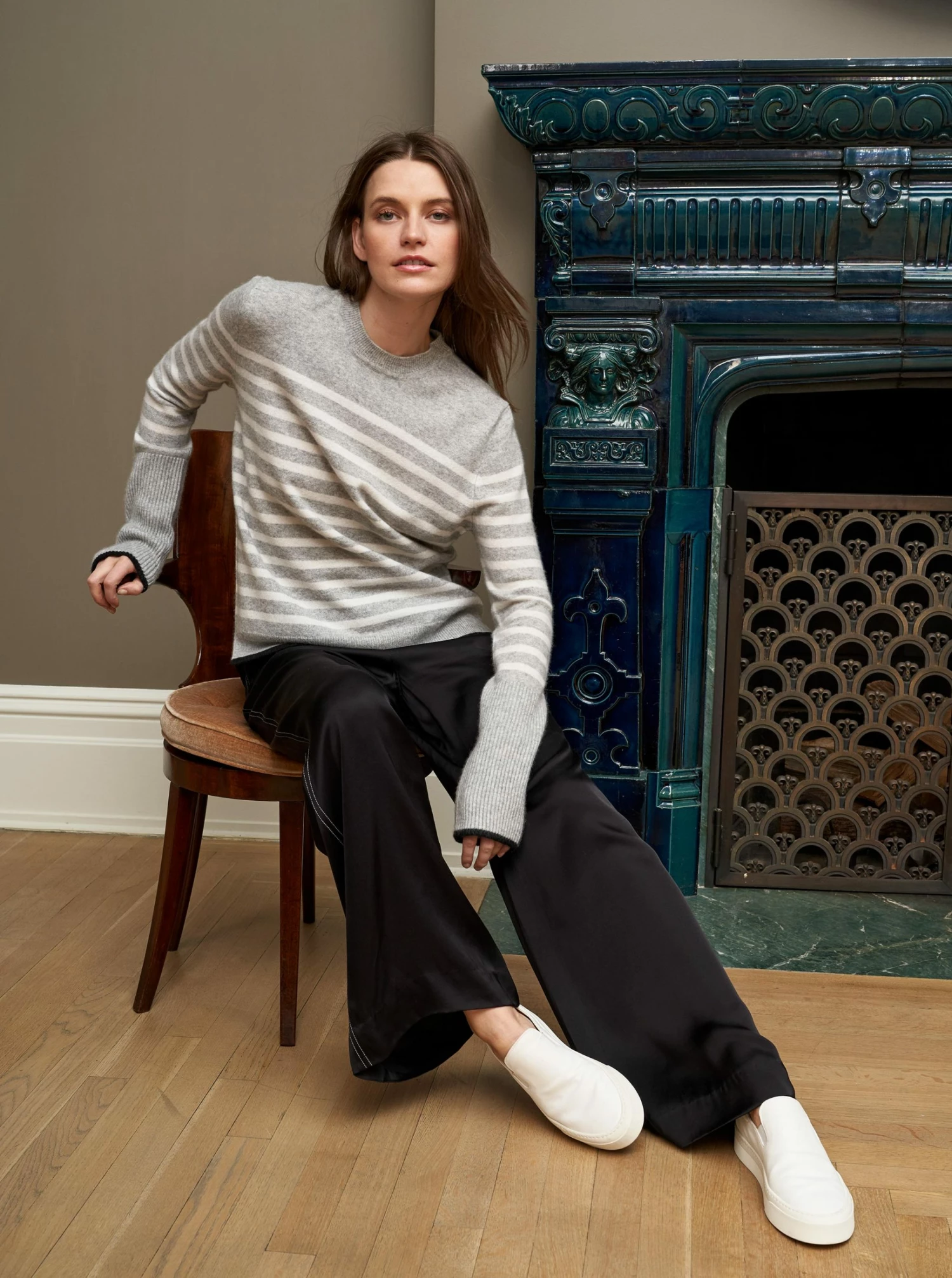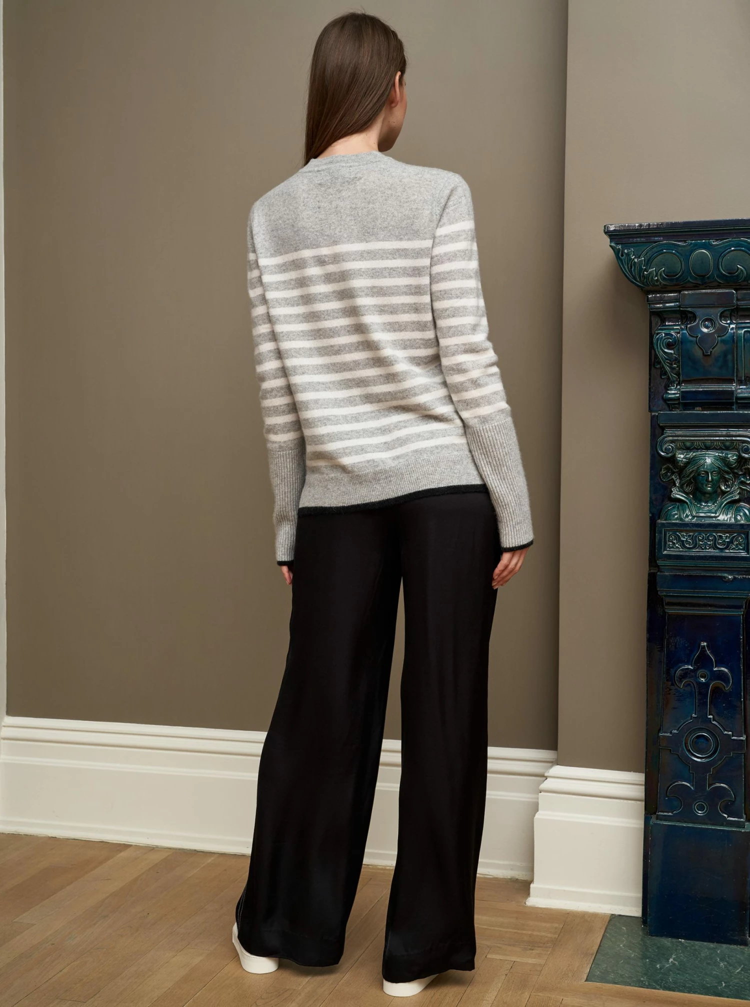 Anytime. Anywhere. Anyplace. We combined our signature AAA Sweater with our top selling Lean Lines Tee to bring you the ultimate year round essential. You know that piece, the one you hope no one will notice you’ve worn three days in a row? This is that sweater, in grey and cream cashmere with black trim. You can thank us later.