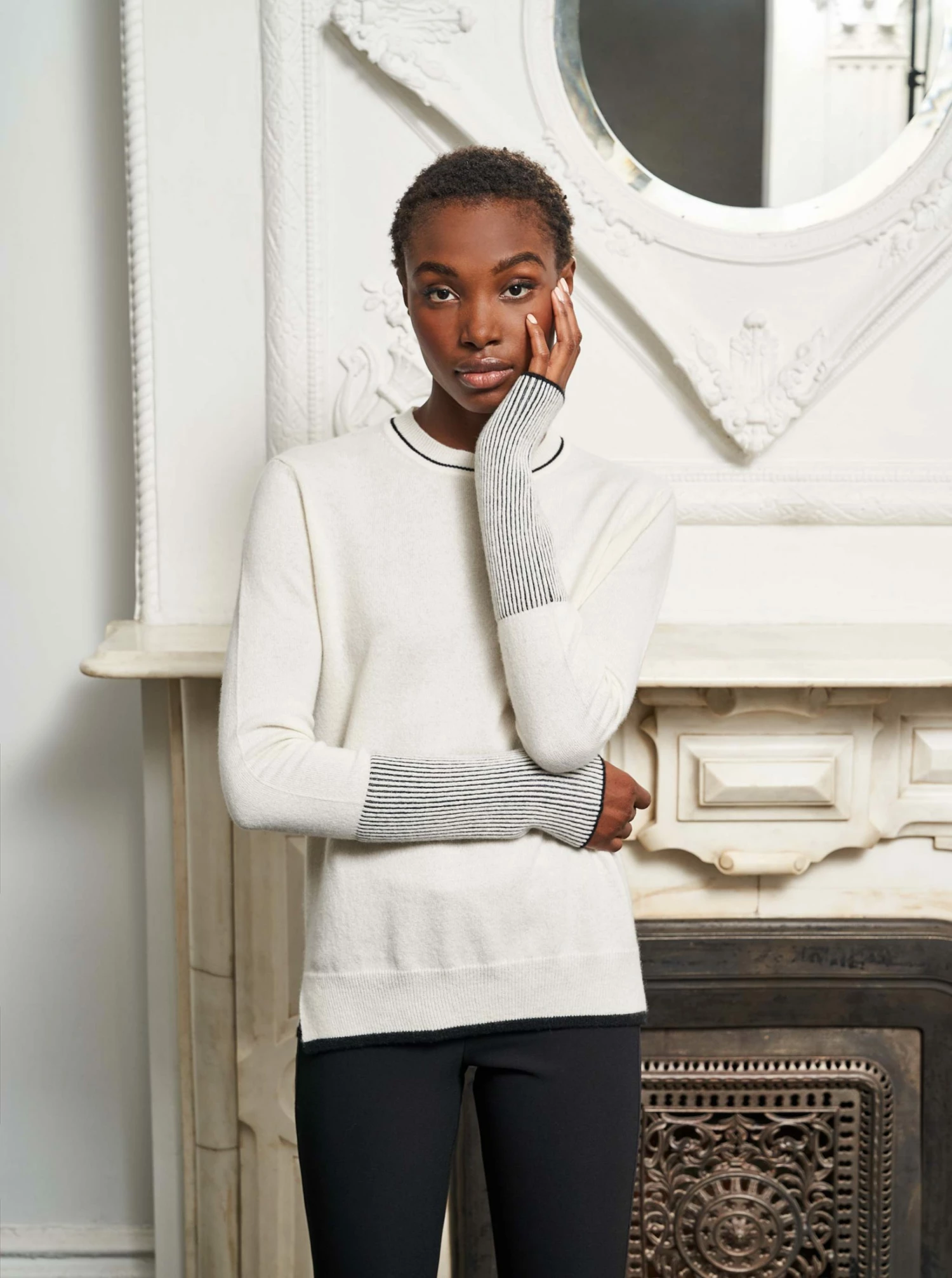 Anytime. Anywhere. Anyplace. You know that piece, the one you hope no one will notice you’ve worn three days in a row? This is that sweater in cream cashmere with elongated sleeves. You can thank us later.