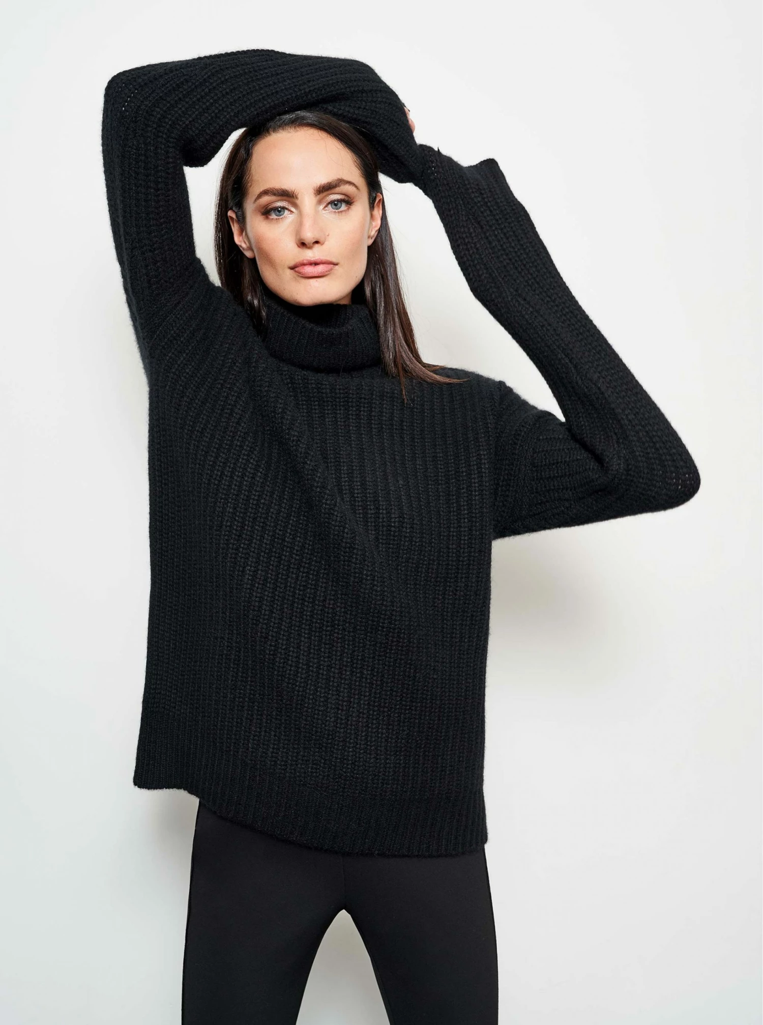 This is it. This is your everyday, never-without, take-with-you-everywhere sweater that will always have your back. Deliciously ribbed cashmere in a sumptuous foldover turtleneck means you need one in every color for tous les jours.Â