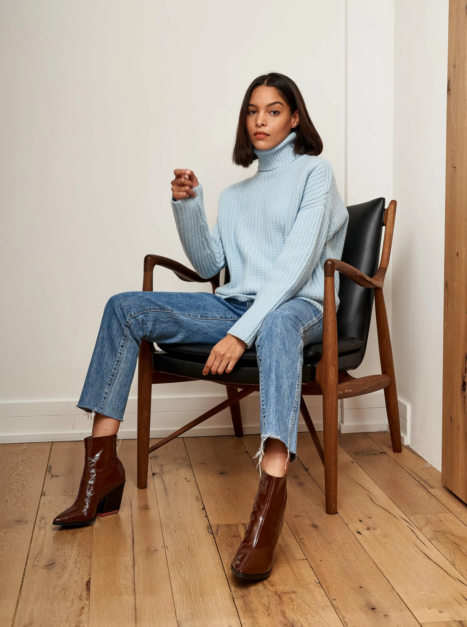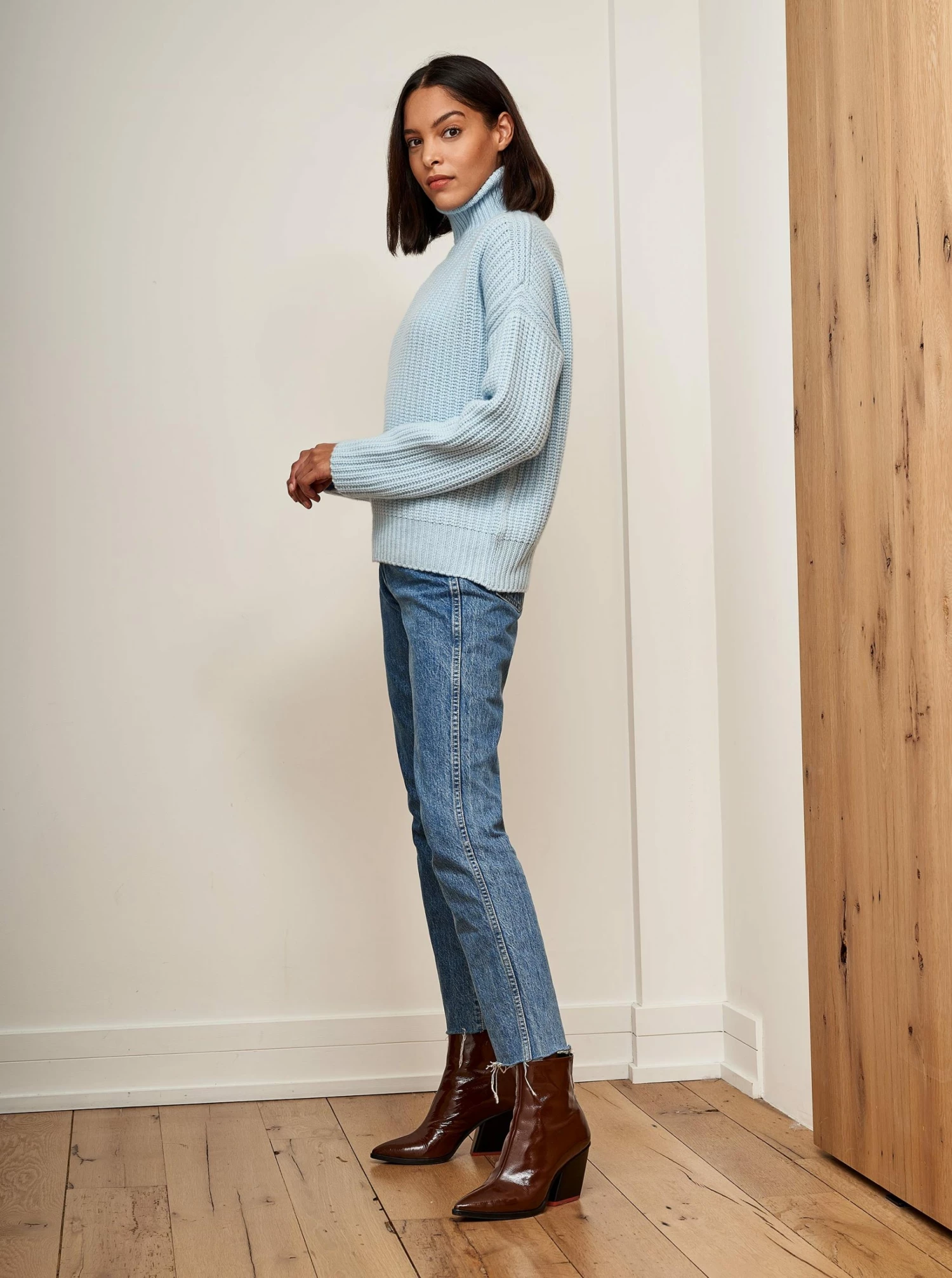 This is it. This is your everyday, never-without, take-with-you-everywhere sweater that will always have your back. Deliciously ribbed cashmere in a sumptuous foldover turtleneck means you need one in every color for tous les jours.Â