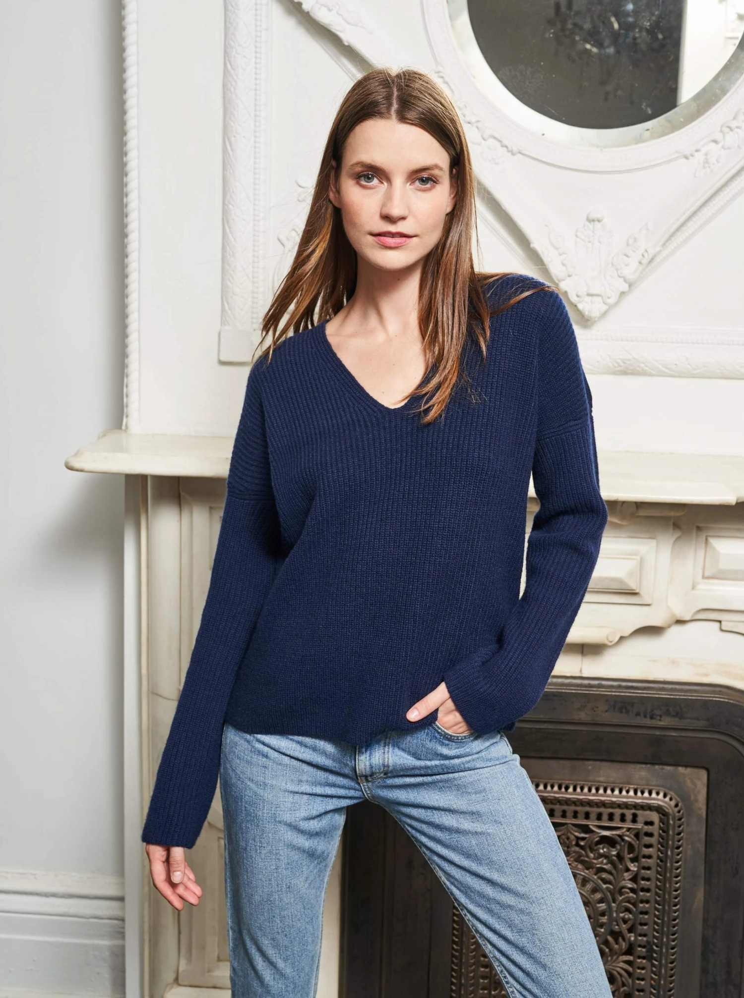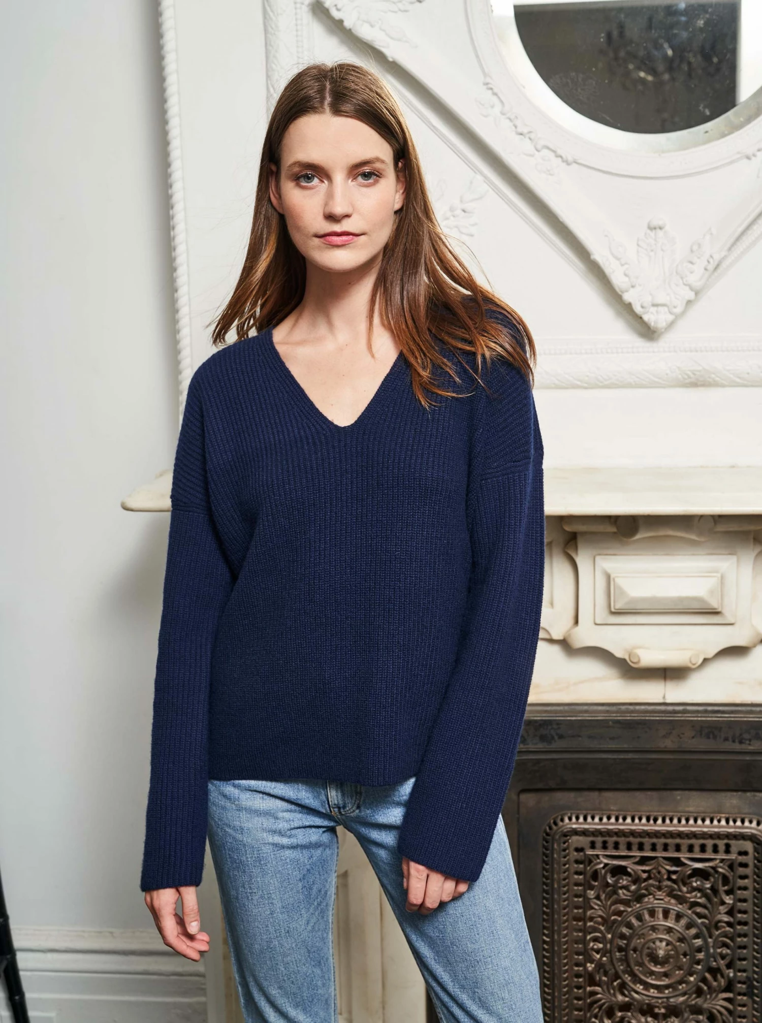 LLC21229_NAVY Toujours V Neck Sweater Knitwear