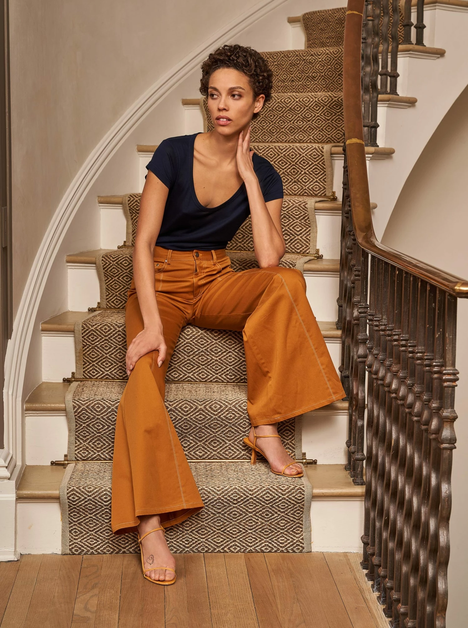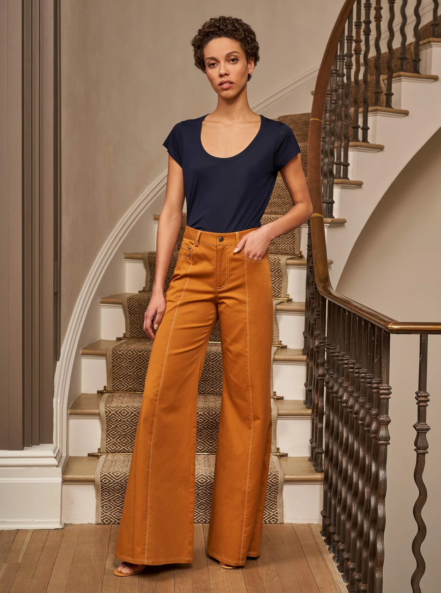 Our Jimmy Tee features a scoop neck and loose body in never-boring navy to go with your denim or feel free to dress it up with a wide leg trouser.