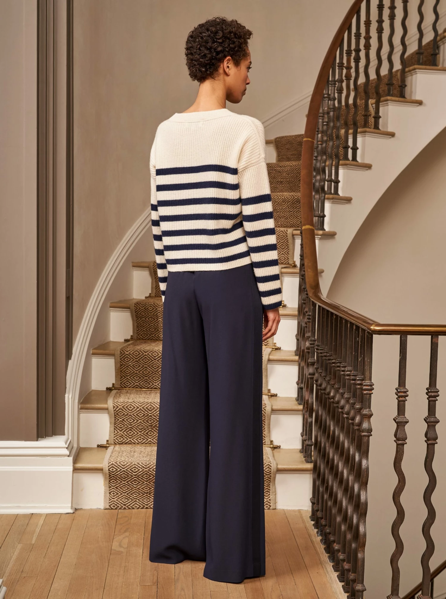 LLC21310_CREAM/NAVY Mini Striped Toujours Sweater