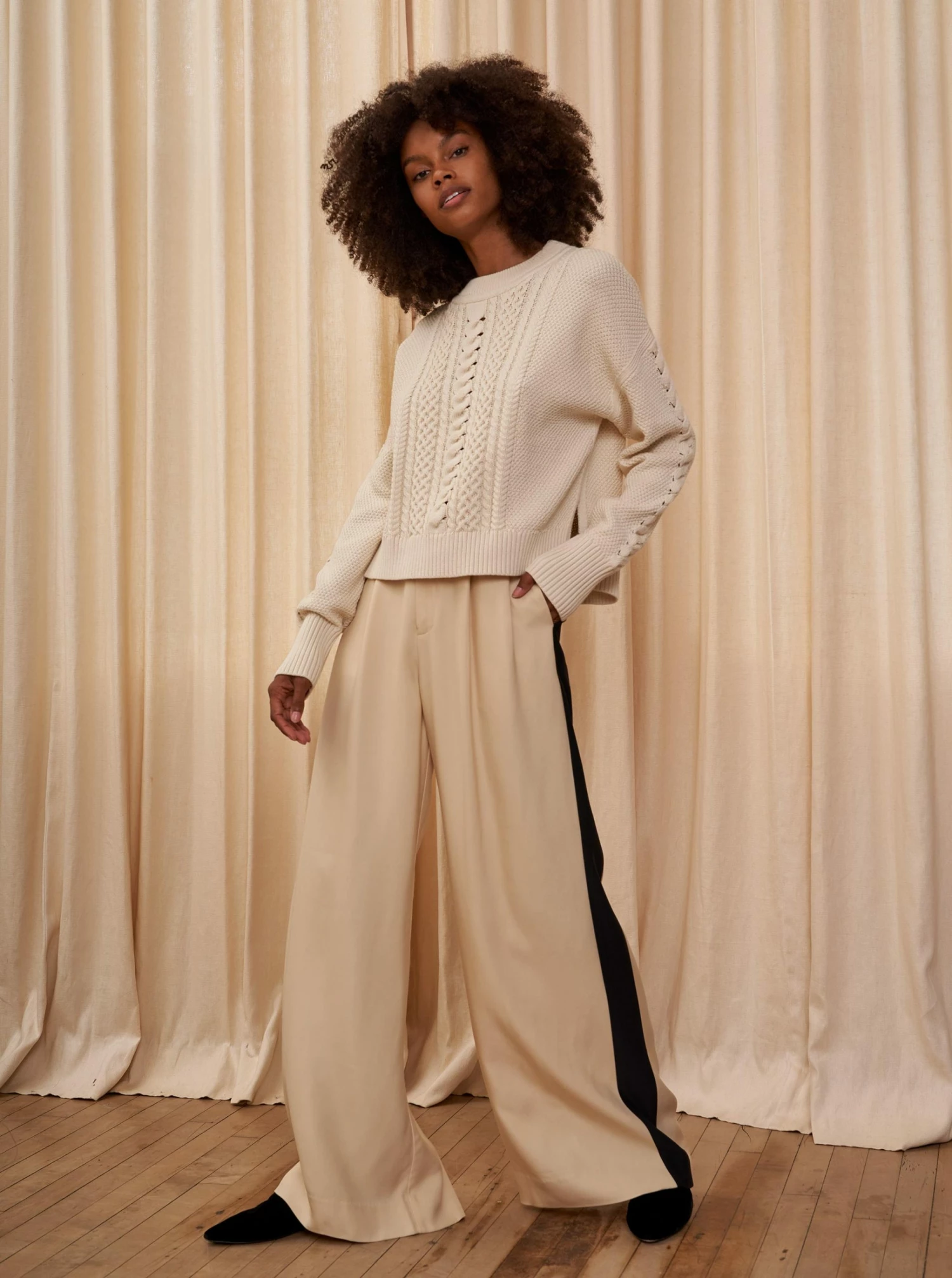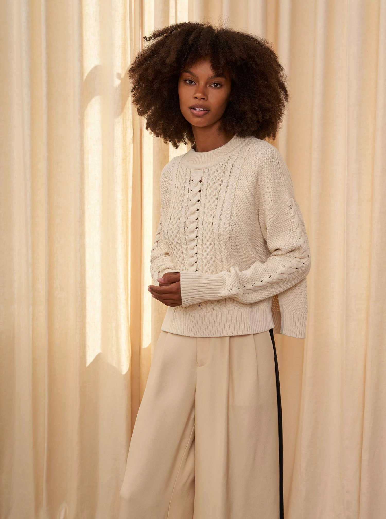 Life can be a picnic so why not dress for it in our cotton cable sweater. Layer over our Lean Lines Tee as a warmer layer or add a reveal by pairing it with one of our tanks, you can’t go wrong when your mood is as light as this knit.
