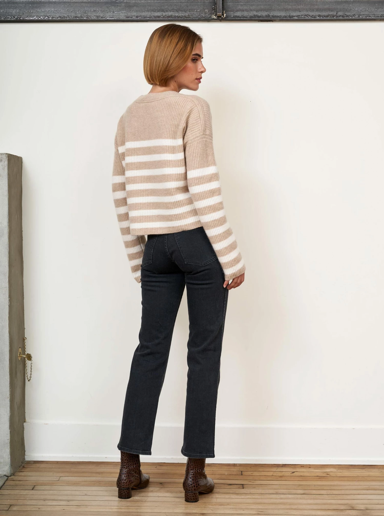 LLC21380_CAMEL/CREAM Mini Striped Toujours Sweater Monogram