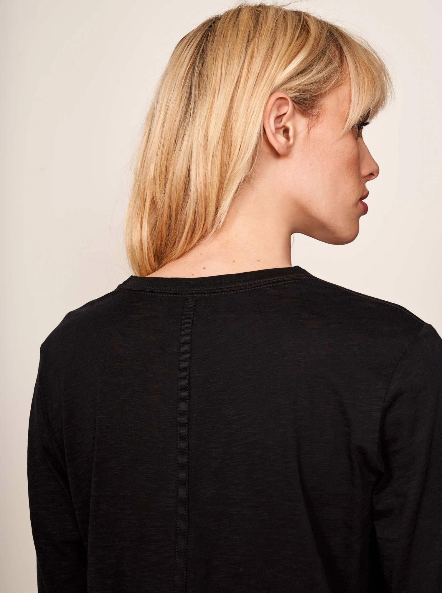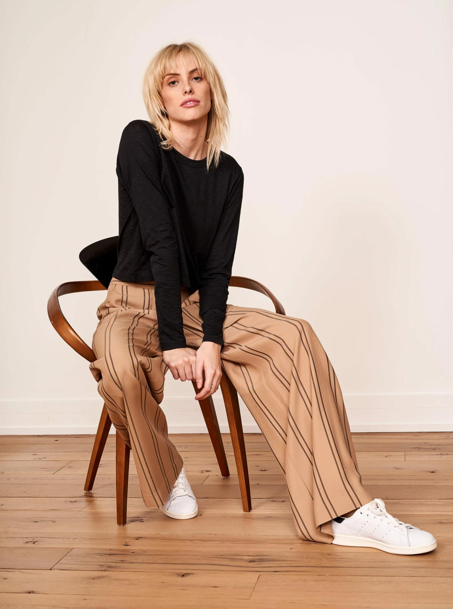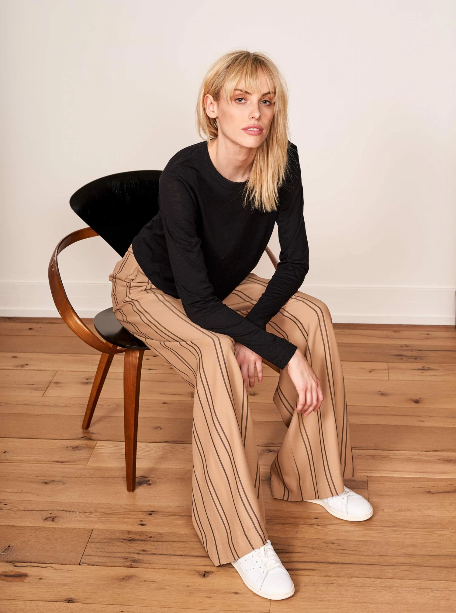 Our Davie Tee in forever-chic black, is based on our best-selling Rickie Tee but with long sleeves. Made from a 100% cotton slub, it feels just as light and airy as it looks. Slightly cropped, this tee is perfect over any of your high-waisted pants.