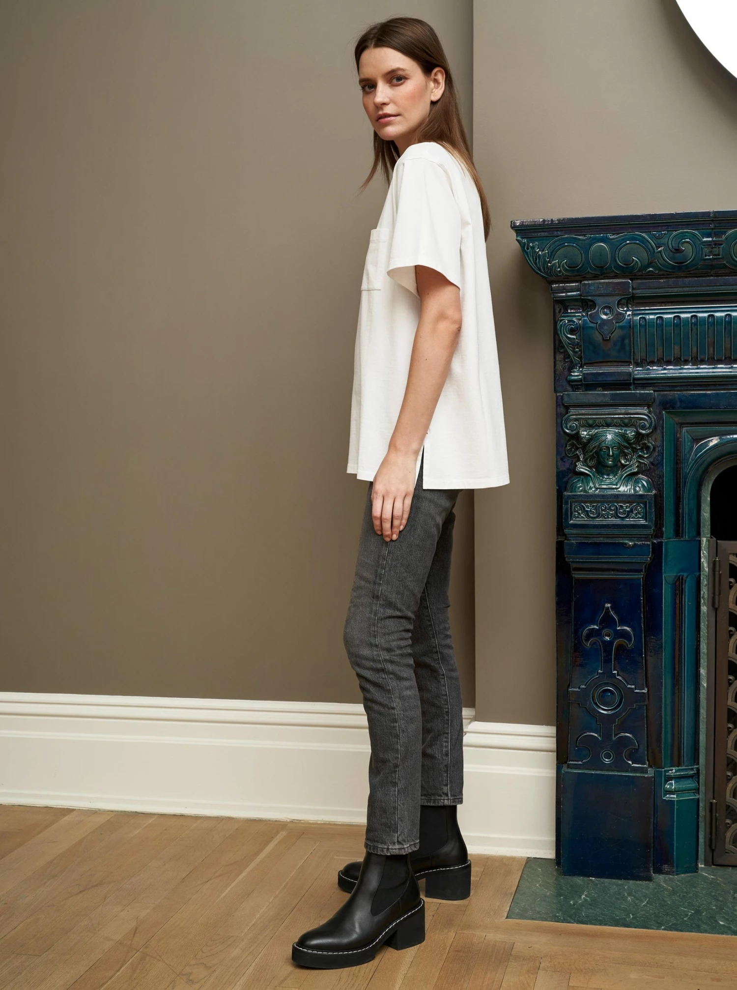 The best boyfriend tee around, our Harry Tee, in 100% organic cotton, features an oversize body with chest pocket and our signature grosgrain ribbon stripe at the back. Pair with your best denim or Le Smoking, Harry’s got your back.