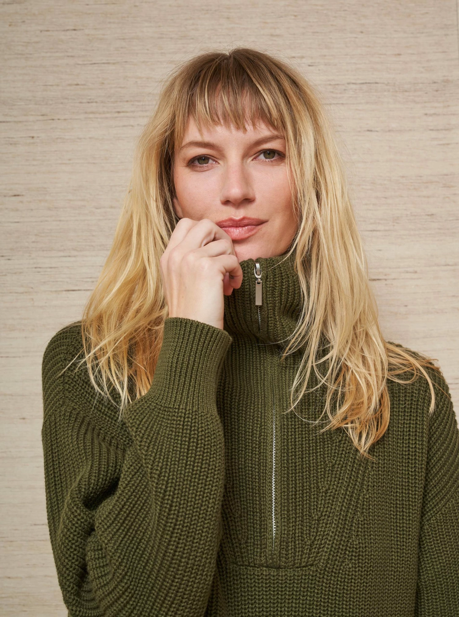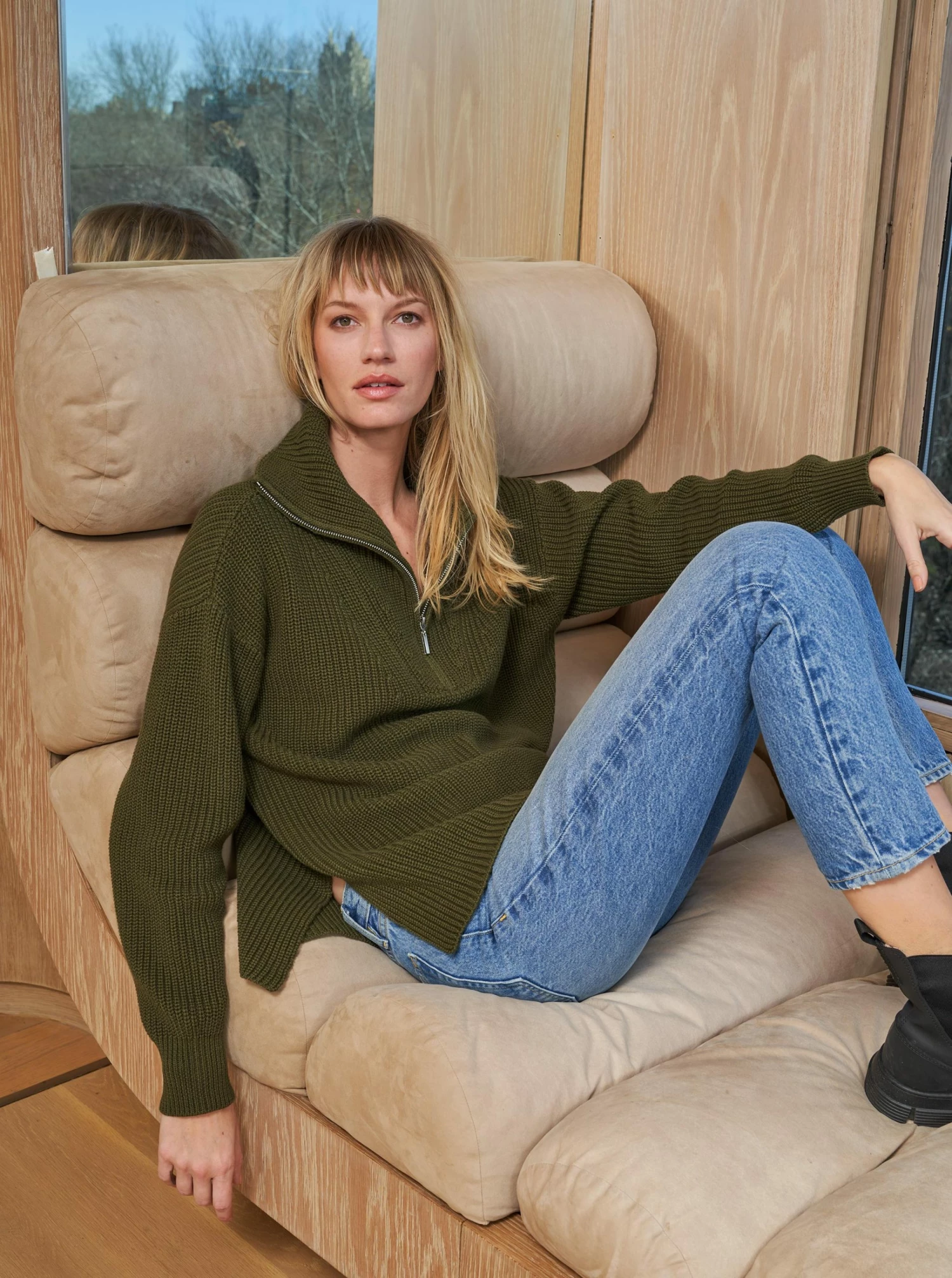 Based off our always-sold-out Bastien Sweater, this half zip is the oversize version in easy cotton with the same ribbed double layer neck trim updated with a ribbed body to match plus side slits.