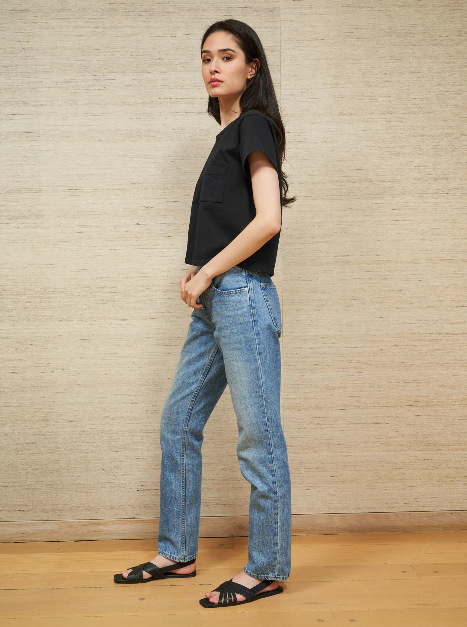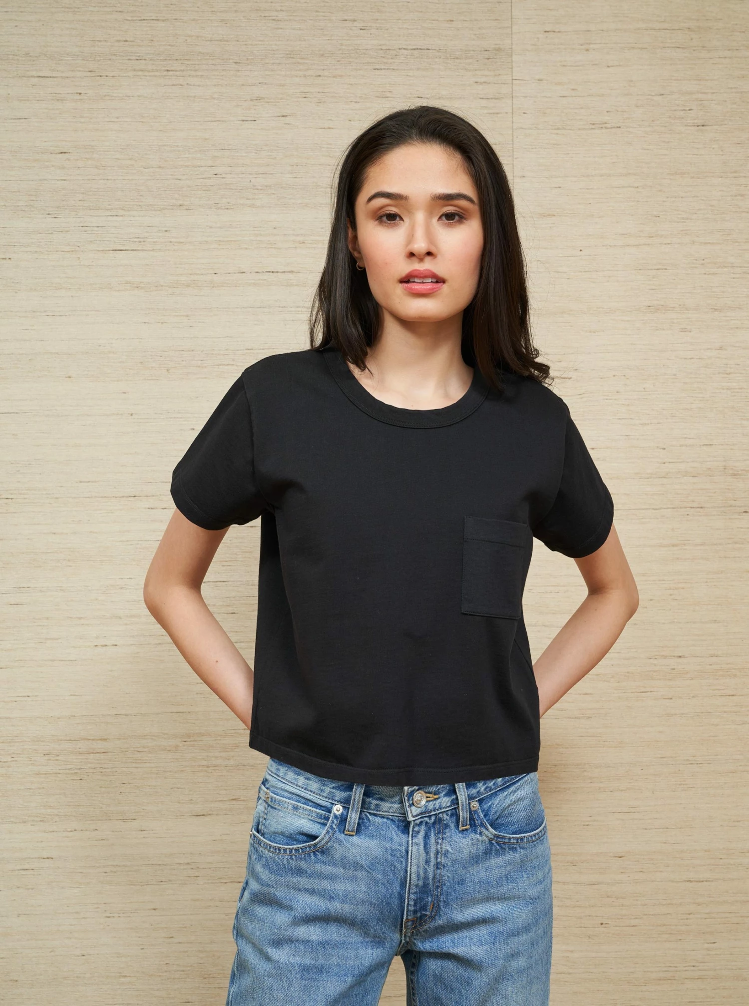 Our classic Henry tee in thick cotton has a cropped, boxy fit with our signature classic grosgrain stripe on the back.
