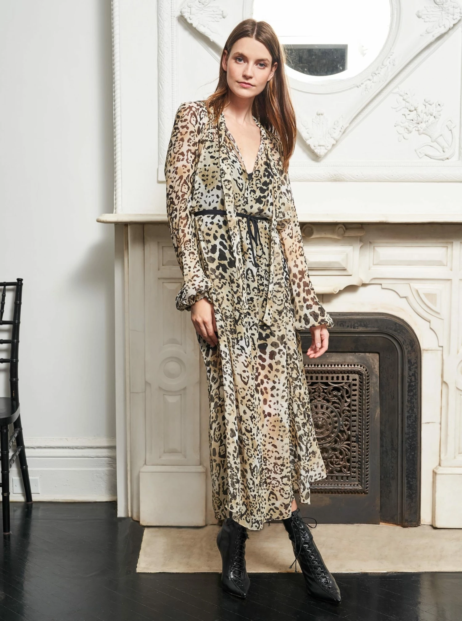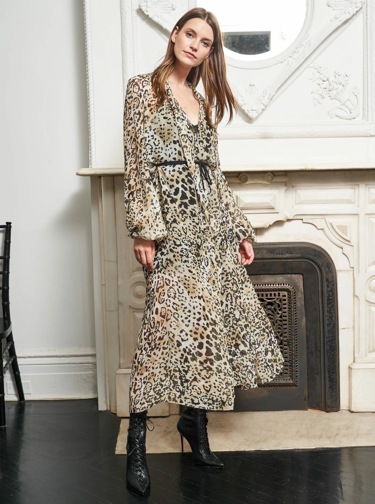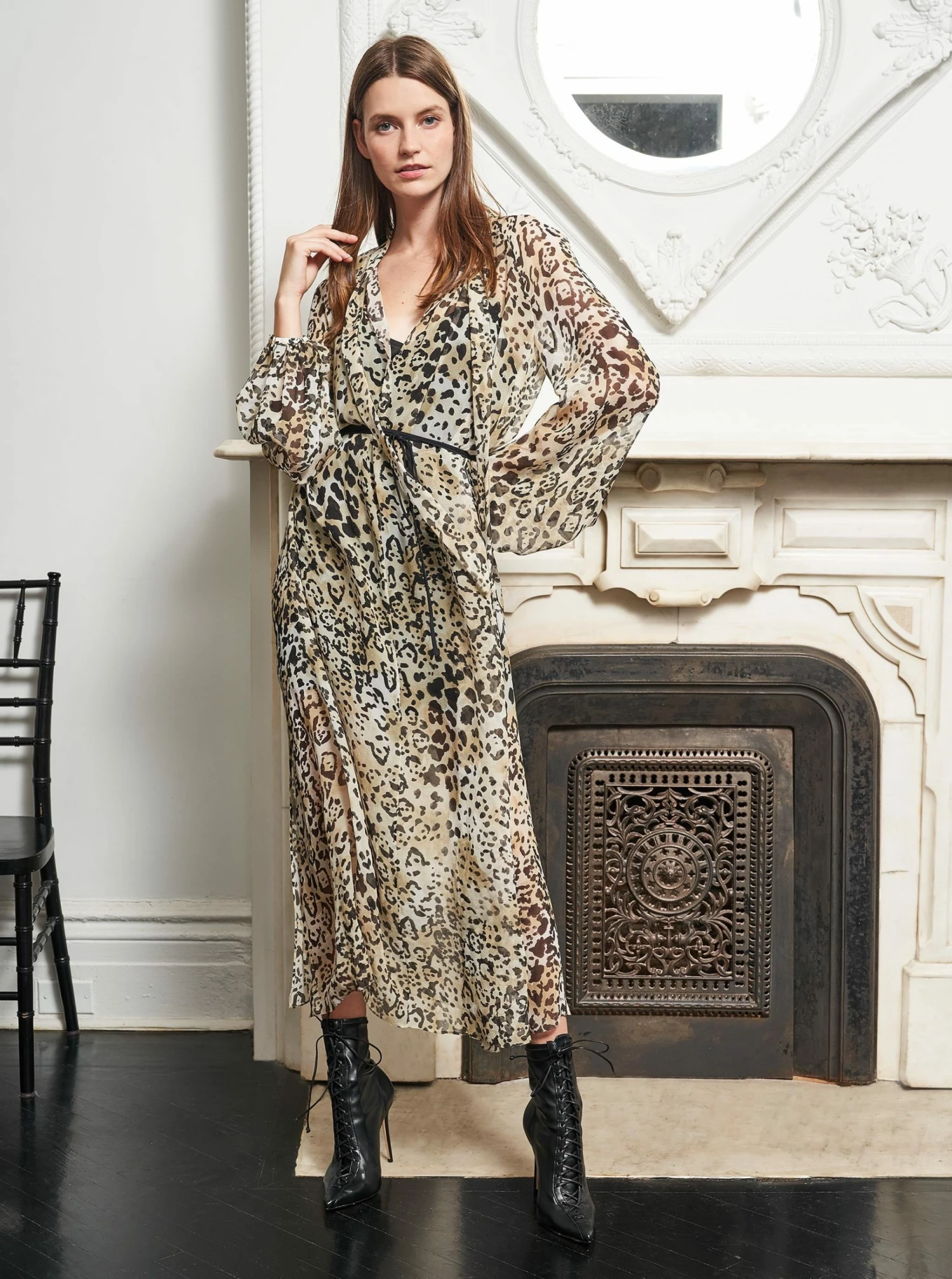 Ferociously stylish and decidedly feline, our newest dress this season in a classic animal print silk has a tie-front neck and a removable slip and belt to give you plenty of options between day and night. Pair it with boots or heels, cinched or loose, the world is your catwalk.