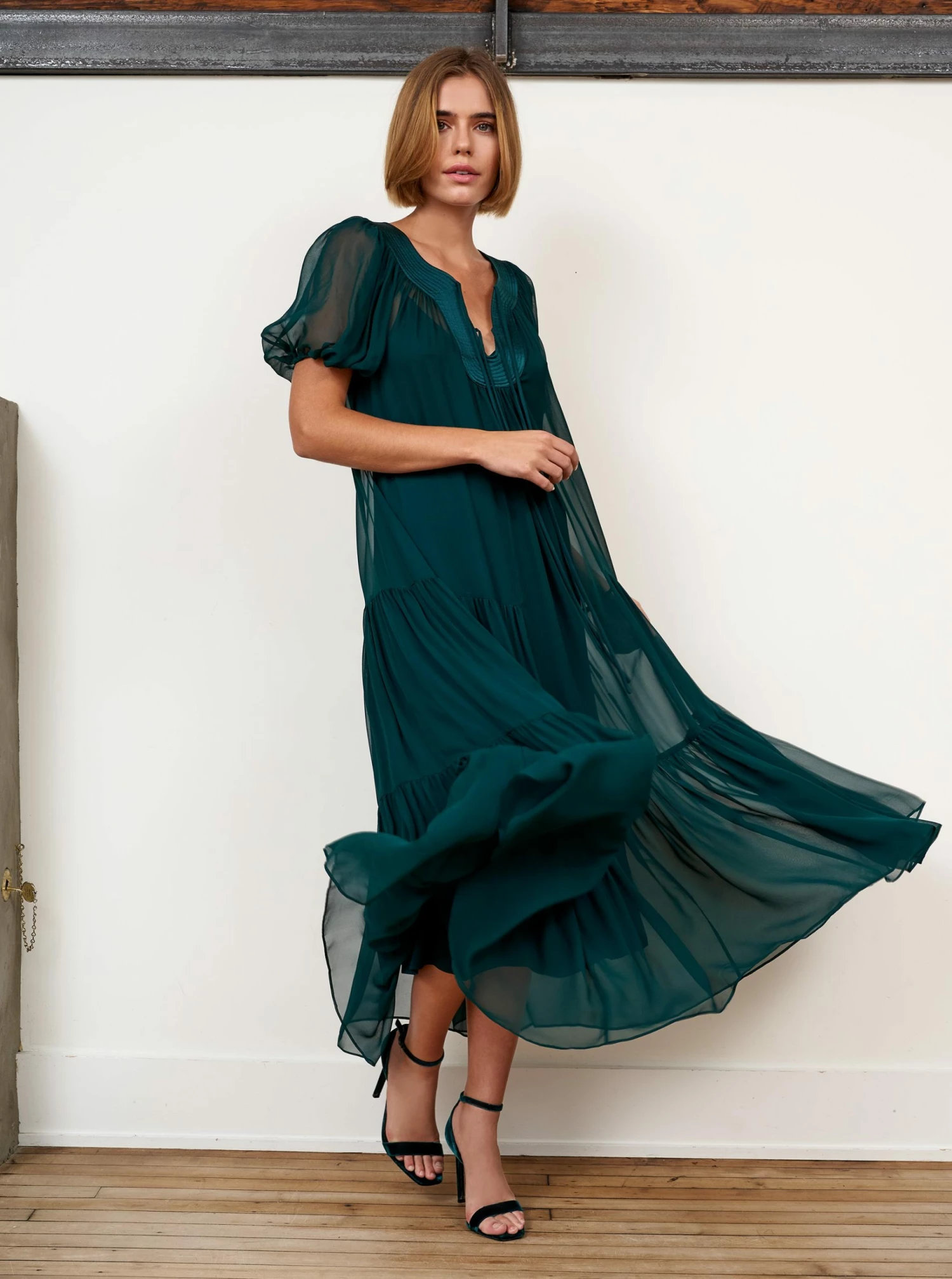 Meet Pippa, our elegant, jewel-toned color dress, with a delicate trapunto stitched collar and balloon sleeves, this dress is the perfect solution for any of your elevated occasions or occasions you want to elevate.Â
