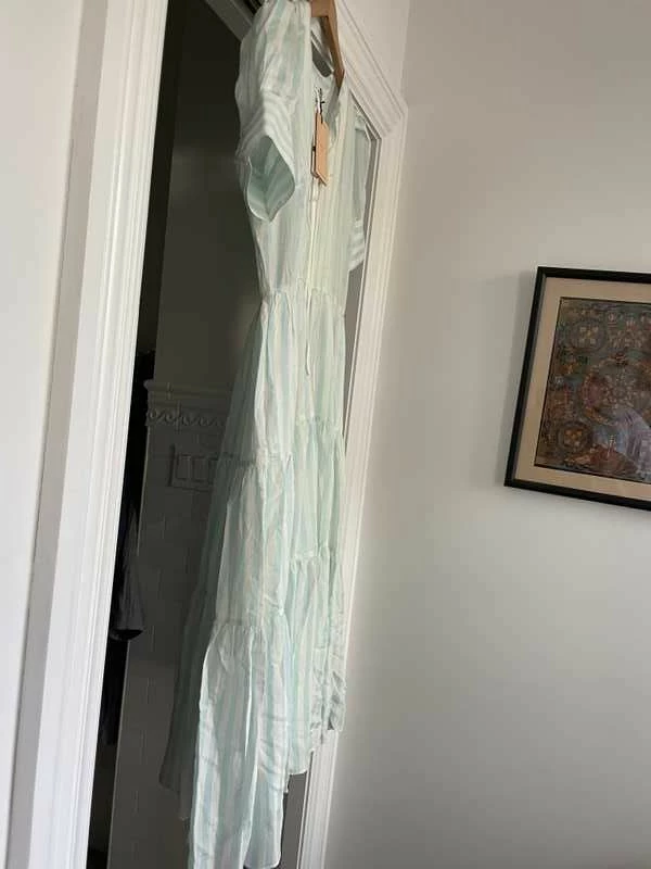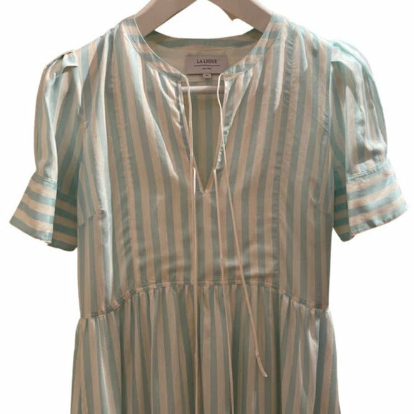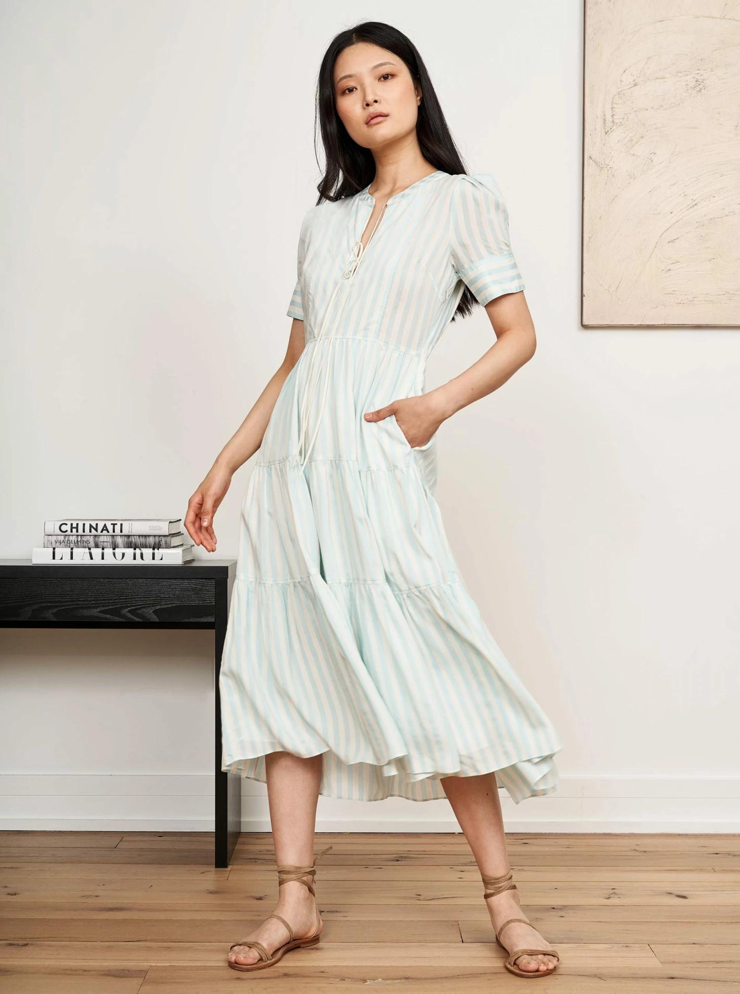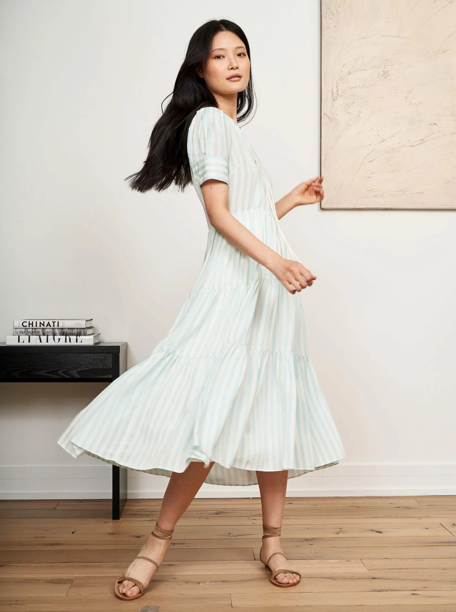 Named after the newest member of our La Ligne family, Isadora Blue, our Izzy Dress is as sweet and playful as she is feminine and chic featuring short sleeves with shirt sleeve cuff button closures, a tie front and tiered skirt. Destined for greatness, this dress works for any occasion.